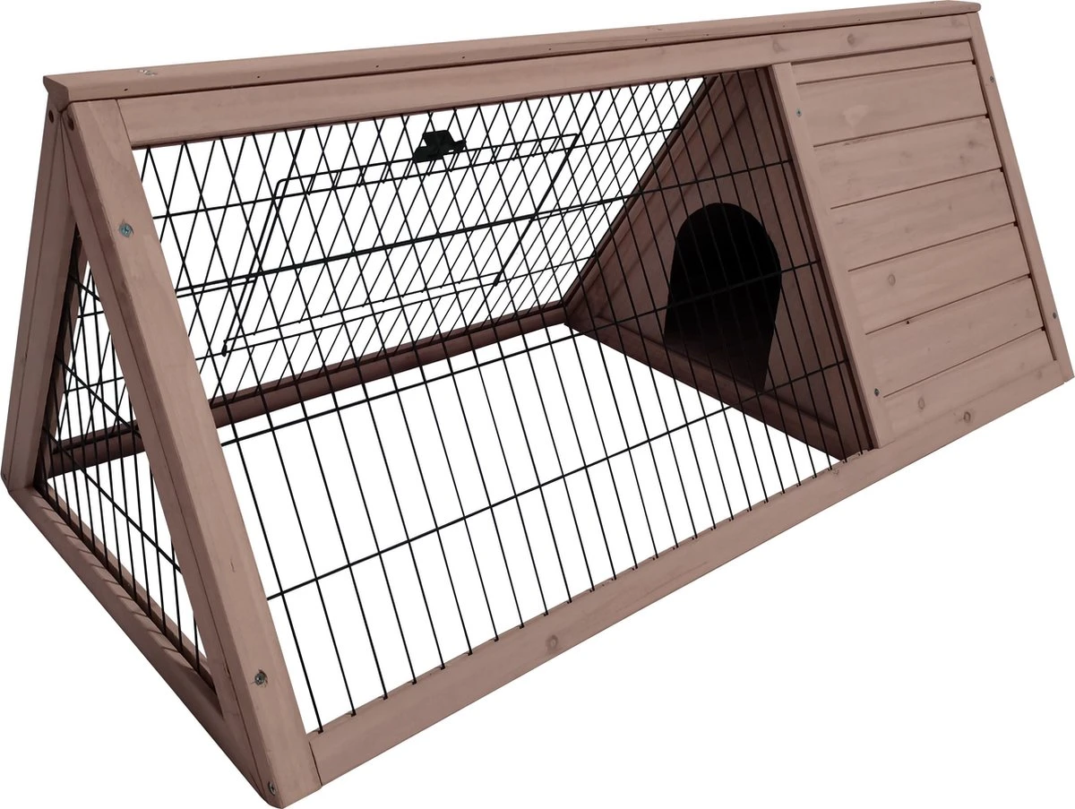Het Woodland konijnenren Tristan van duvoplus is een leuke buitenverblijfplaats voor konijnen of caviaβs in de vorm van een driehoek. Het houten schuilhok geeft uw huisdier beschutting, rust en een veilig gevoel. De ren heeft 2 deurtjes met schuifslot en kan gemakkelijk verplaatst worden doorheen de tuin. Bovendien is de ren gemakkelijk te monteren en ook uit elkaar te halen om op te bergen