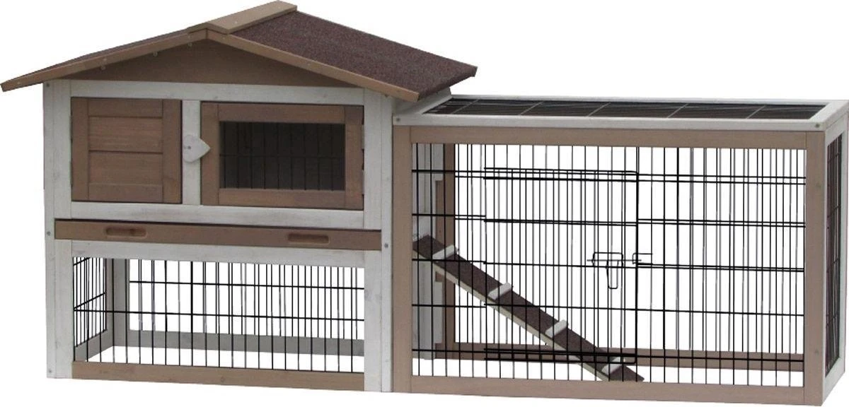 Konijnenhok Ren Sunshine Urban Is een leuke konijnenhok met klassiek nachthok Γ©n uitloopruimte. Het konijnenhok bestaat uit 3 delen, een nachthok, open ren en ren onder nachtgedeelte. Het konijnen nachthok heeft een slaapplek welke helemaal afgesloten en is voorzien van een open gedeelte, beide zijn voorzien van een deurtje. De benedenverdieping van het hok is volledig voorzien van traliewerk en beschikt over een deurtje. Er is een trapje van de zij ren naar het nachthok. Het konijnenhok heeft genoeg deurtjes voor jezelf en het konijn om interactie te krijgen. Let op: de sluiting van het hok, is aangepast / verbeterd. Het deurtje wordt niet meer gesloten met het getoonde hartje maar met een sluitschuif.