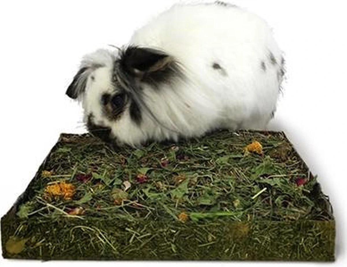 Rosewood Naturals Weiland 30x24x4 cmEen echt stukje heide van leem dat boordevol zit met verschillende eetbare kruiden, grassen en bloemen. Dit alles verpakt in een, met hooi gecoat, knapperig perkamentblad. Jouw diertje kan zich hiermee voeden, er aan knibbelen en in graven, net als in de natuur. Het bedje bevat een assortiment van weidkruiden, grassen met wortels en bloemen voor extra smaak en voeding. Het weiland is ideaal voor alle konijnen, caviaβs, chinchillaβs en degoes. Kleuren: groenAfmetingen: 30x24x4 cmMateriaal: maisblad en bananenblad