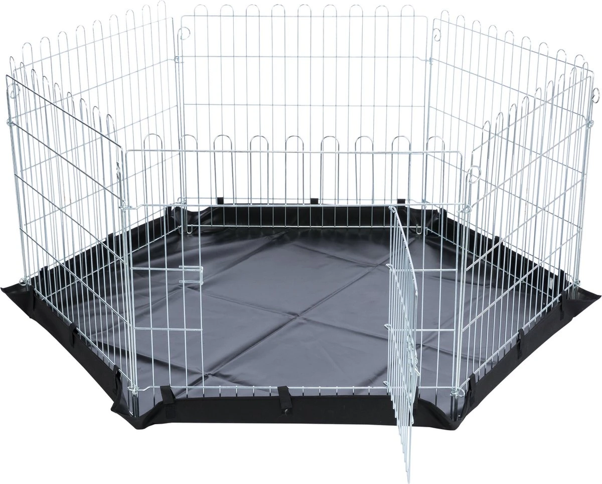 De Trixie Natura Bodem Voor Ren Zwart is een polyester bodem voor knaagdierren 6250/6253, voor binnen en buiten tegen vuil en vocht. Jouw vloer blijft schoon met deze handige bodem voor konijnenrennen met Trixie-nummers 6250 en 6253. De bodem is vast te maken met klittenbandsluitingen en voorkomt verontreiniging van de vloer bij binnengebruik, en tegen bodemvocht en kou bij buitengebruik. Ook zorgt deze bodem ervoor dat buitenkonijnen niet onder de ren door naar buiten kunnen graven. De bodem is gemaakt van waterafstotend polyester en schoon te maken met de handwas.
