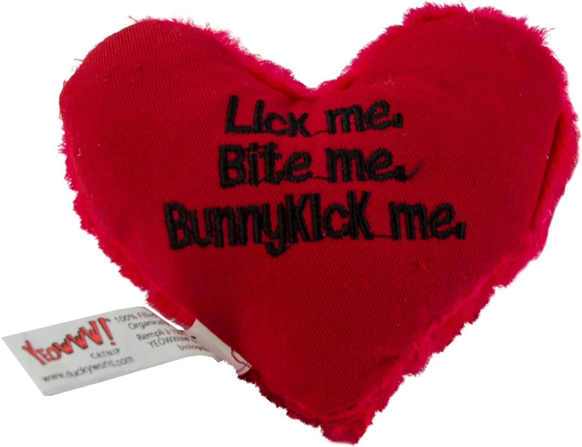 Yeowww! The Hearrrts “Lick Me, Bite Me, Bunnykick Me” – Kattenspeelgoed Met Kattenkruid – Catnip – Onweerstaanbaar Voor Katten – 11,5 X 10,5 Cm – Rood – One Size